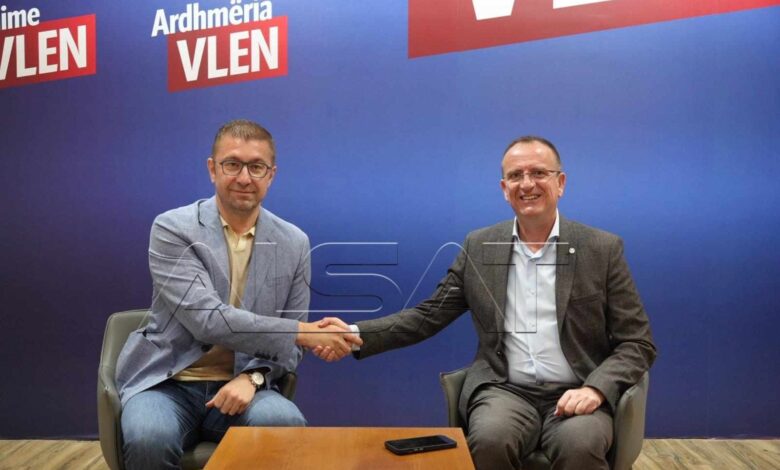 Koalicioniet VLEN dhe “Maqedonia jote” në një takim në shtabin qendror të koalicionit VLEN, sot, kanë diskutuar për parimet e qeverisë së re reformuese 4 vjeçare. Ndërsa ditët e fundit opinioni u pushtua nga zëra e dërgimit të emisarëve të BDI-së tek VMRO-ja, Mickoski ka zbritur sot në shatbin e VLEN, për të shprehur në mënyrë të qartë bashkëpunimin e ri, ku u prit nga njëri nga liderët e VLEN, Arben Taravari. Alsat mëson se lufta kundër krimit dhe korrupsionit, përfshi ata që kanë qëndruar duarkryq me mosndëshkueshmërinë, si dhe orientimin strategjik drejt BE-së janë dy pikat kryesore të marrëveshjes politike.