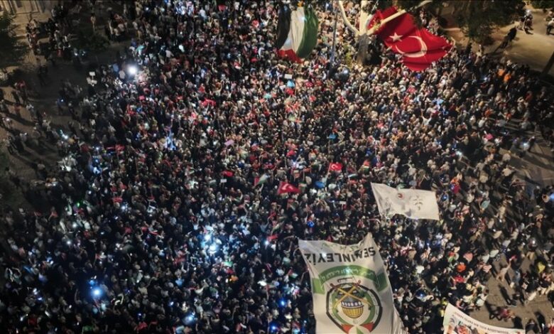 Mijëra njerëz u mblodhën në qytetin turk, duke marshuar nga Sheshi Beyazit deri në xhaminë e Shën Sofisë për të treguar mbështetjen e tyre për popullin palestinez, raportoi Sinem Koseoglu e Al Jazeera nga tubimi.