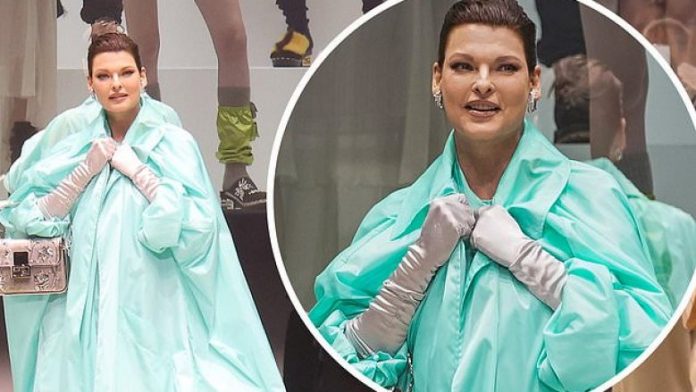 Linda Evangelista bëri një rikthim triumfues në pistë pas 15 vitesh kur bëri një paraqitje surprizë në sfilatën e Fendi për të festuar 25 vjetorin e çantës ikonë Baguette.