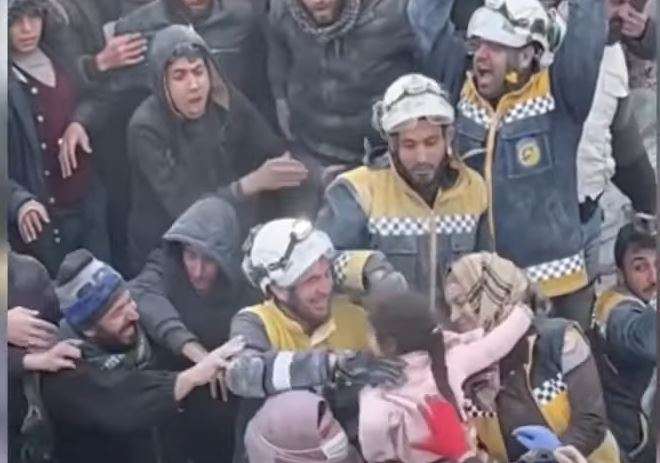 Turma ka shpërthyer në brohoritje ndërsa një familje me dy të rritur dhe katër fëmijë u nxorën nga rrënojat në Idlib të Sirisë.