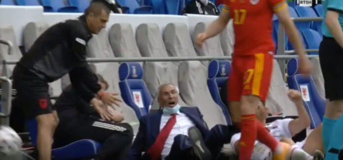 Selektori i Kombëtares së Shqipërisë, Edi Reja u rrëzua gjatë ndeshjes kundër Uellsit.