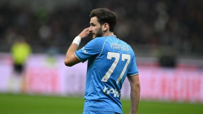 Agjenti i Khvicha Kvaratskhelia ka thënë se klienti i tij dëshiron të largohet nga Napoli këtë verë, por klubi dhe trajneri i tyre, Antonio Conte, duan ta mbajnë gjeorgjianin në Stadio Maradona dhe tashmë kanë refuzuar një ofertë prej 100 milionë euro nga PSG.