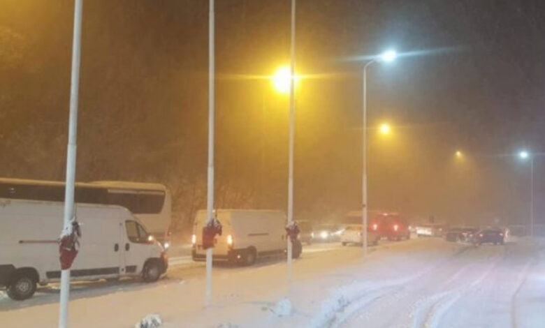 Nga ora 14:10 është ndaluar qarkullimi për automjete të rënda në rrugën Gostivar-Kërçovë përmes qafës malore të Strazhës.