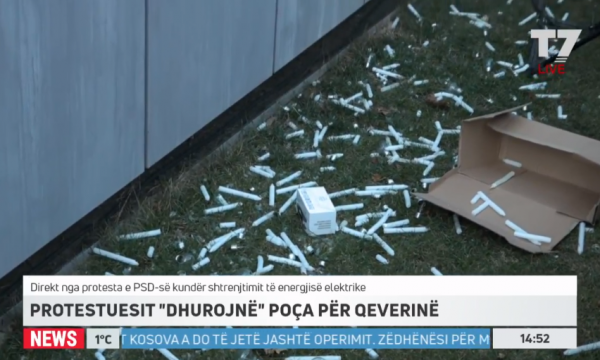 Aktivistët e Partisë Socialdemokrate dhe protestuesit e tjerë kanë filluar të gjuajnë poça elektrikë dhe qirinj në drejtim të objektit të Qeverisë së Kosoëvs, raporton Express.