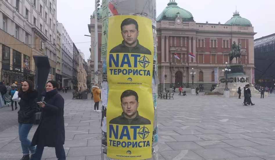 Në qendër të Beogradit janë vendosur posterë me fotografinë e presidentit ukrainas, Volodymyr Zelensky, dhe me mbishkrimin “terrorist i NATO-s”.