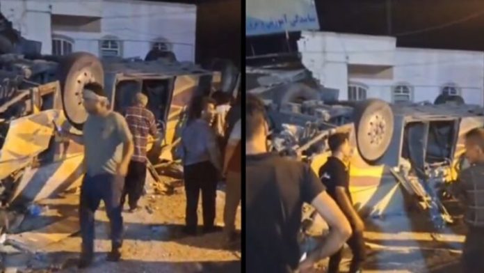 Pamjet e transmetuara nga televizioni shtetëror iranian, shfaq autobusin e rrokullisur në një autostradë ku kulmi është përplasur dhe të gjitha dyert e tij kanë mbetur të hapura.