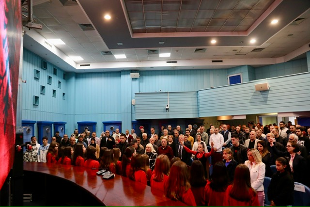 “Sepse, historia jonë, fatkeqësisht ka një përmbajtje të dhimbshme. Ne, jemi mësuar të bashkëjetojmë edhe me dhimbjen. Por, kjo dhimbje nuk na penguar, përkundrazi na ka motivuar të qëndrojmë, t’i luftojmë padrejtësitë dhe të ecim para, duke u përballur me shumë sfida. Por, asnjë dhunë, asnjë brutalitet nuk arriti që të na thyejë shpirtërisht, përkundrazi treguam se ne jemi vetëm në anën e së drejtës, treguam se ne nuk e ndërtojmë ardhmërinë mbi fatkeqësinë e askujt”, tha me këtë rast Ganiu.