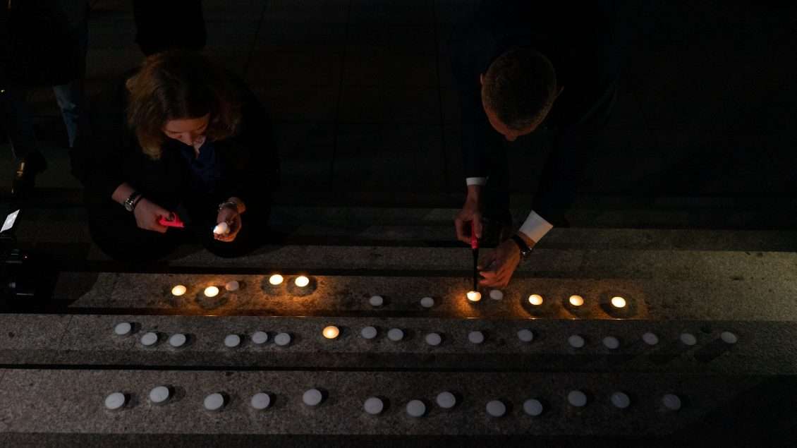 Ata ndezën qirinjtë para Teatrit Kombëtar në Prishtinë.