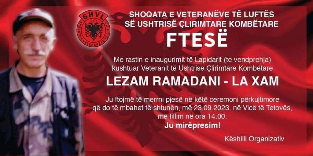 Të shtunën në fshatin Vicë të Tetovës do të inaugurohet lapidari i verpimtarit dhe veteranit të UÇK-së, Lezam Ramadani, apo siç njihej ndryshe, La Xami.