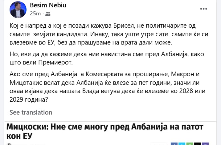 Nëse jemi para Shqipërisë, kurse komesarja për Zgjerim, presidenti francez Makron dhe ai grek Micotakis, thonë se Shqipëria do të hyjë në BE për pesë vite, a do të thotë kjo deklaratë e kryeminisrit se qeveria jonë premton se do të hyjmë në vitin 2028 ose 2029?