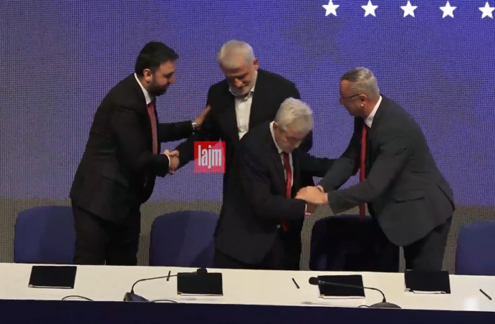Kryetarët e BDI-së, Ali Ahmeti, të LP-së, Skender Rexhepi, të PDE-së, Arijanit Hoxha dhe i PDSH-së, Menduh Thaçi sot kanë nënshkruar marrëveshjen për themelimin e Frontit Evropian.