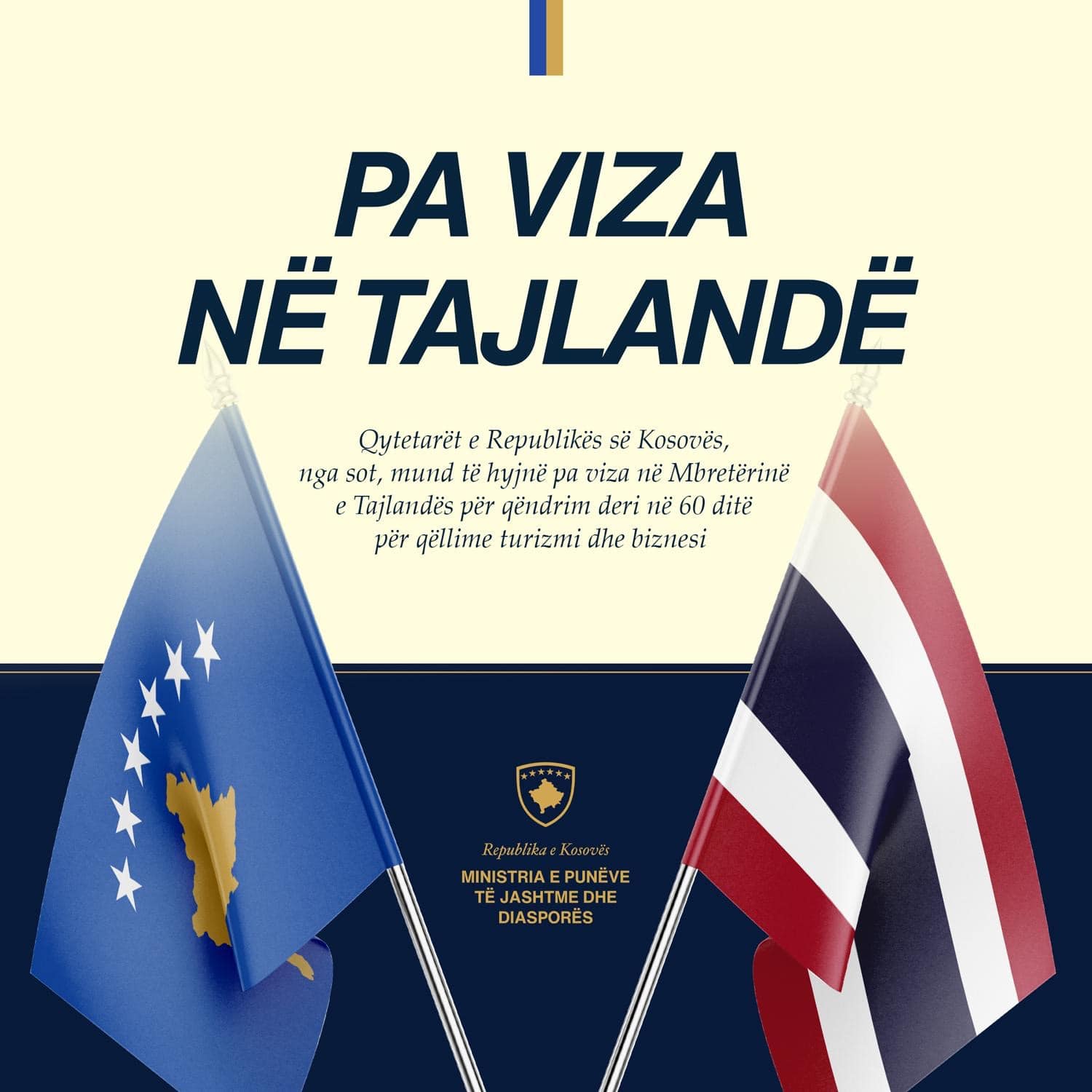 Tajlanda nga sot i ka hequr vizat për qytetarët e Kosovës.