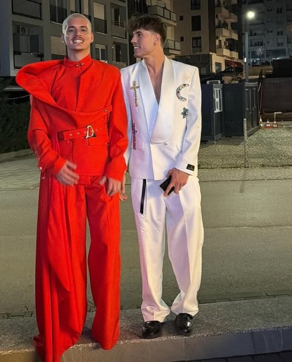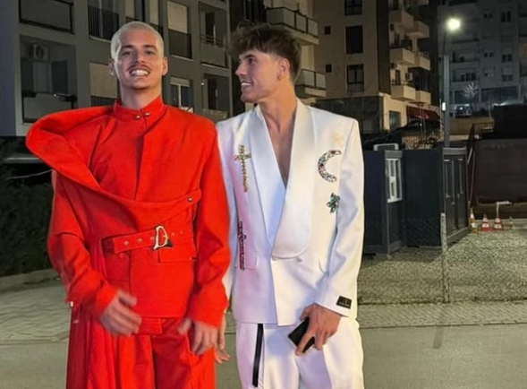 Të veshur me veshjet e natës finale, dyshja duket se e kanë shkrepur fotografinë menjëherë pas përfundimit të spektaklit, duke ruajtur emocionet e asaj mbrëmjeje të madhe.