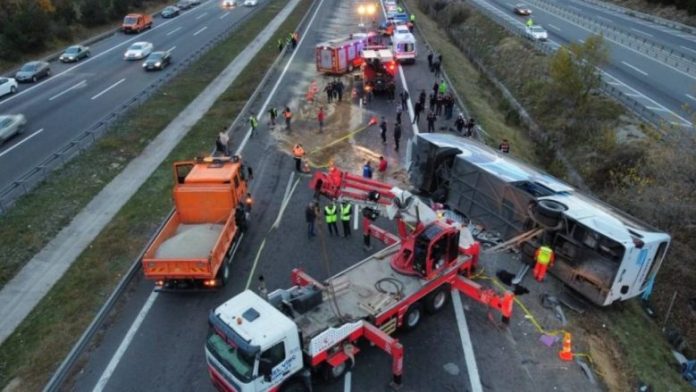 Një autobus pasagjerësh nga kompania private e autobusëve Kamil Koc u përmbys në një autostradë kryesore pranë provincës Bolu, shkruajnë mediat e huaja. Ministri turk i Shëndetësisë, Fahrettin Koca tha se 32 të plagosurit përfshinin dy në gjendje të rëndë.