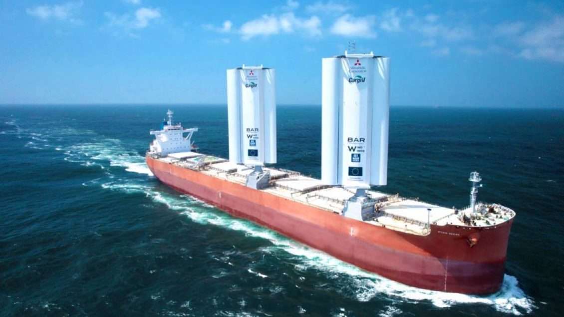 Një anije mallrash e projektuar nga Britania e Madhe e pajisur me vela të mëdha të ngurtë ka nisur udhëtimin e parë.