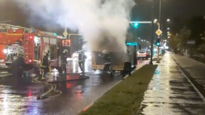 Një autobus i Ndërmarrjes për Transport Publik ka marrë flakë në Aerodrom të Shkupit.
