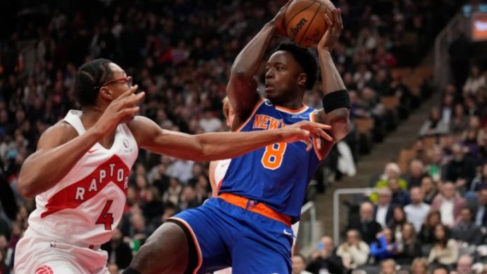 Basketbollistet e New York Knicks mposhtën Toronto Raptors me rezultat 113:108 në një ndeshje dramatike dhe një trepikësh gjashtë sekonda para fundit ishte vendimtar.