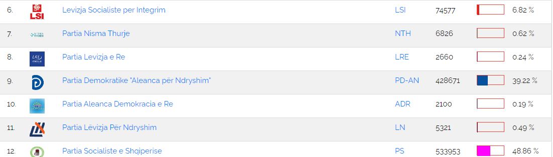 E dyta renditet Partia Demokratike me 428 mijë e 671 vota apo 39.22 përqind të votave.