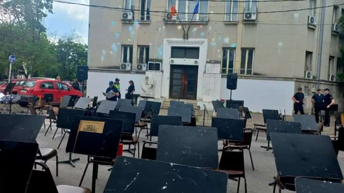 Orkestra e Ministrisë së Kulturës sërish protestoi para Ministrisë së Kulturës kundër vendimit për vendosjen e Orkestrës së jazz-it të sapoformuar në objektin e filarmonisë.