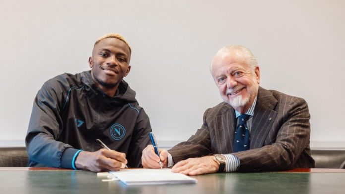 Siç është traditë në Napoli, De Laurentiis mori vetë kontrollin e njoftimit, duke postuar imazhet e Osimhenit duke firmosur dokumentet me vetëm një fjalë: ‘U krye!’.