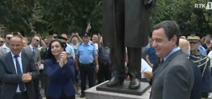 Shtatorja është zbuluar nga presidentja Osmani, kryeministri Albin Kurti, Teuta Rugova e bija e presidentit, kryetari Shpejtim Bulliqi dhe Fatmir Sejdiu. /Express/