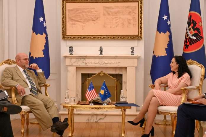 Presidentja e Kosovës Vjosa Osmani, është takuar me ambasadorin e Shteteve të Bashkuara të Amerikës Jeffrey Hovenier.