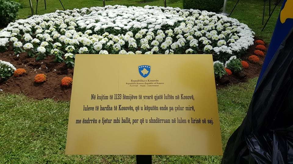 Për nder të 21 vjetorit të çlirimit të vendit tonë, sot në oborrin e Kuvendit të Kosovës u mbollën 1133 lule për 1133 fëmijë të vrarë gjatë luftës në Kosovë.