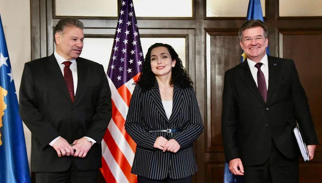 Presidentja Vjosa Osmani ka thënë se Kosova është palë konstruktive, e përgatitur dhe e angazhuar në procesin e dialogut të përqendruar në njohjen e ndërsjellë, pas takimit që ajo pati me të dërguarin e ShBA-së për Ballkanin Perëndimor, Gabriel Escobar dhe atë të BE-së, Miroslav Lajçak.