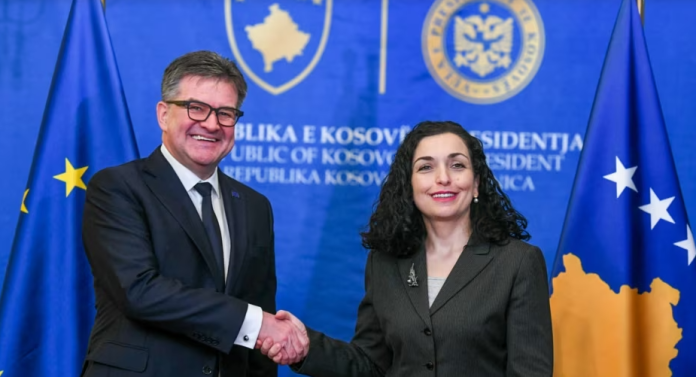 Në takimin e së hënës me të dërguarin e BE-së, sipas Presidencës, Osmani tha se marrëveshja për normalizimin e marrëdhënieve mes Kosovës dhe Serbisë dhe aneksi i saj, të arritura në fillim të vitit 2023, duhet të zbatohen plotësisht.
