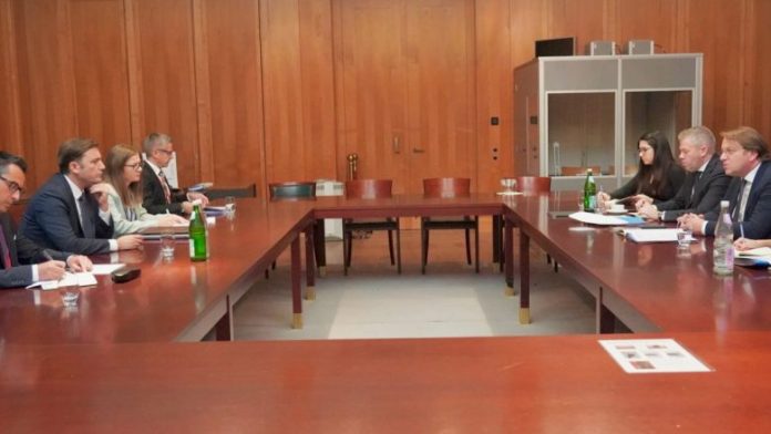 Në margjinat e takimit të ministrave të jashtëm në kuadër të Procesit të Berlinit, Ministri i Punëve të Jashtme, Bujar Osmani realizoi takim me Komisionerin për Zgjerim dhe Fqinjësi, Oliver Varhelyi, njoftojnë nga MPJ.