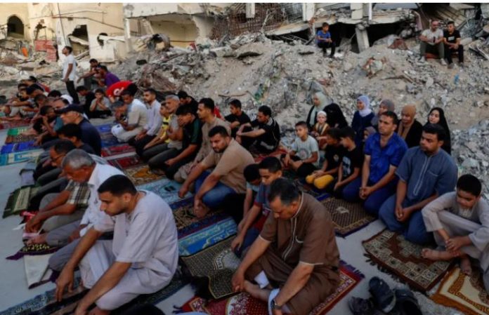 Palestinezët në Deir el-Balah e falën namazin e Kurban Bajramit të rrethuar me rrënoja.