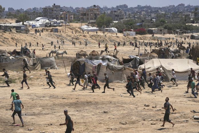 Njerëzit në Gazën qendrore po nxitojnë të mbledhin ndihma pasi ato u hodhën nga ajri me parashutë sot.