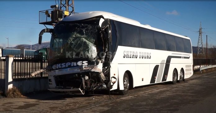 Autobusi i kompanisë “Shero Tours” është aksidentuar rreth orës 04:30 të mëngjesit të sotëm me një kamion i cili po bartte dru.