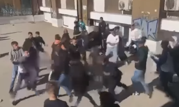 Pamje tjera nga rrahja mes nxënësve afër gjimnazit “Sami Frashëri” në Kumanovë (VIDEO)