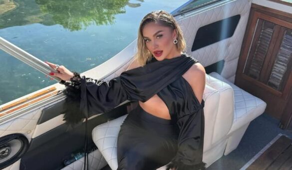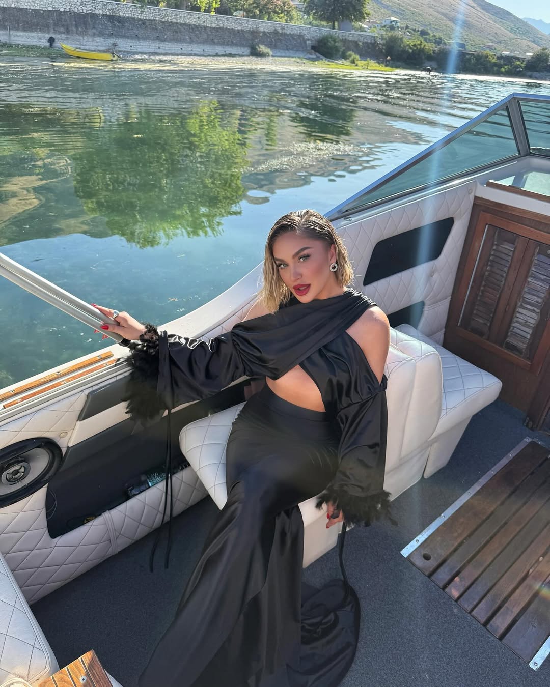 Nga pushimet, ajo ndau disa poza mjaftë sensuale duke vënë në pah hiret trupore në bikine ngjyrë të kaltër.