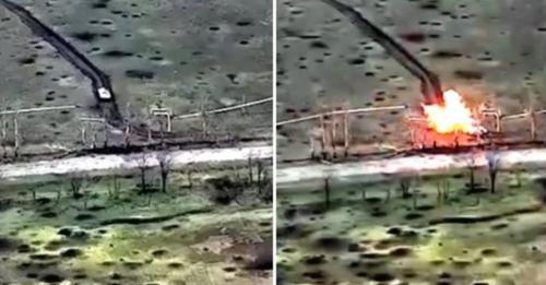 Tanku rus përfshihet i tëri nga zjarri dhe më pas ngritet një re e tymit të zi, e lokacioni i këtij sulmi nuk është bërë i ditur për arsye sigurie.