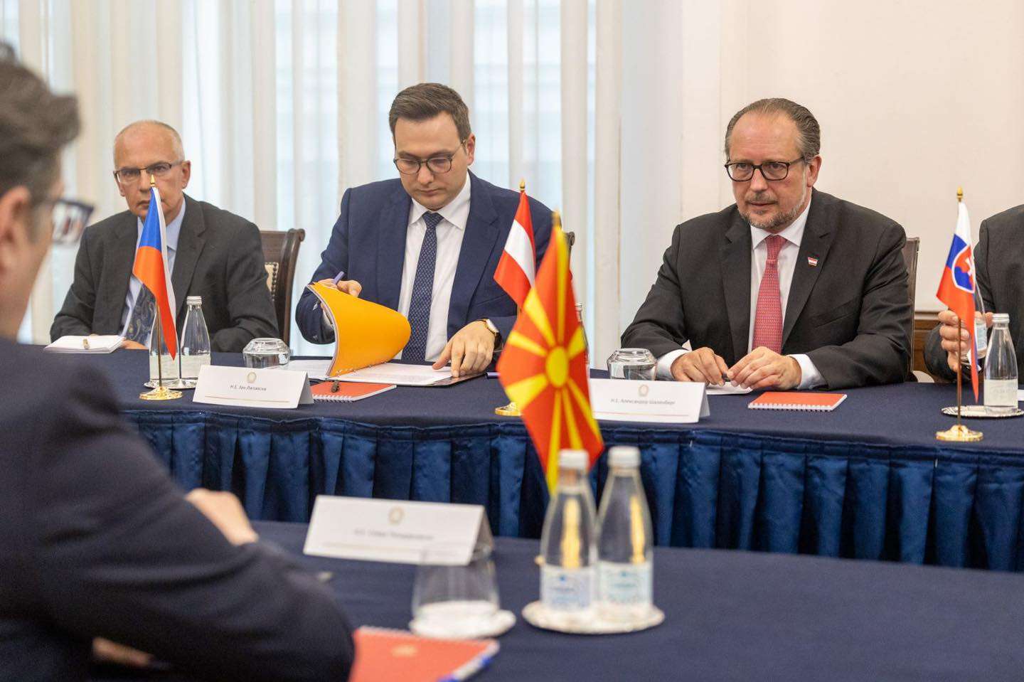 Presidenti Stevo Pendarovski sot priti ministrat e Punëve të Jashtme të Republikës së Austrisë, Çekisë dhe Sllovakisë, Aleksandar Shallenberg, Jan Lipevski dhe Miroslav Vlahovski, përfaqësues të formatit të iniciativës trepalëshe Sllavkov.