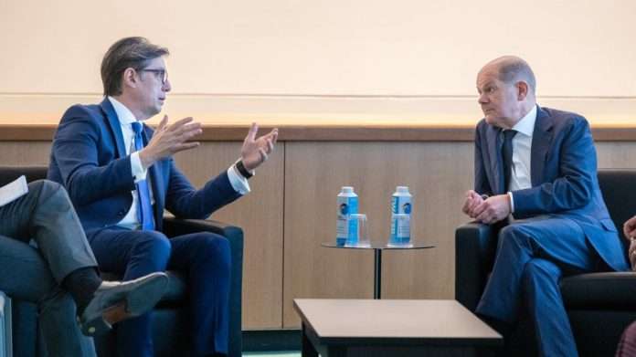 Nga kabineti i Pendarovskit njoftuan se në takim është biseduar për bashkëpunimin bilateral ndërmjet Maqedonisë së Veriut dhe Gjermanisë, perspektiva evropiane e vendit dhe zhvillimet aktuale në rajon.