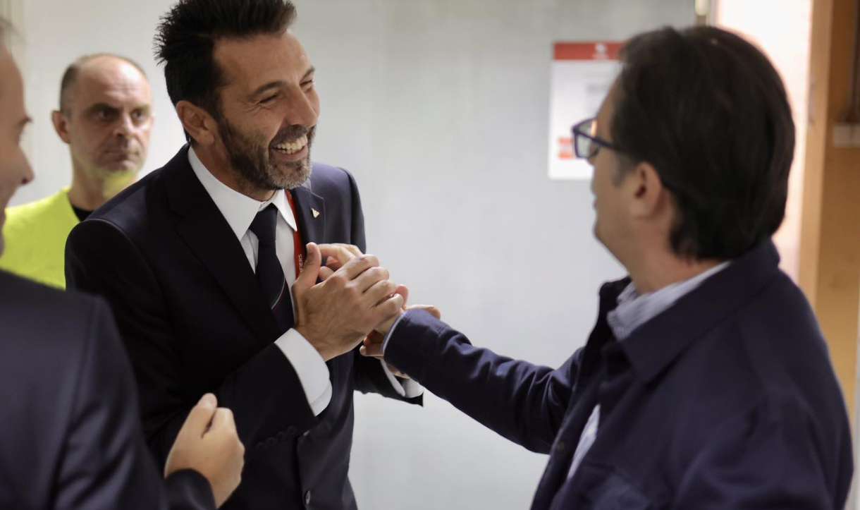 “Përshëndetje sportive me Gianluigi Buffon. Le të fitojë më i miri”, shkruan Pendarovski.