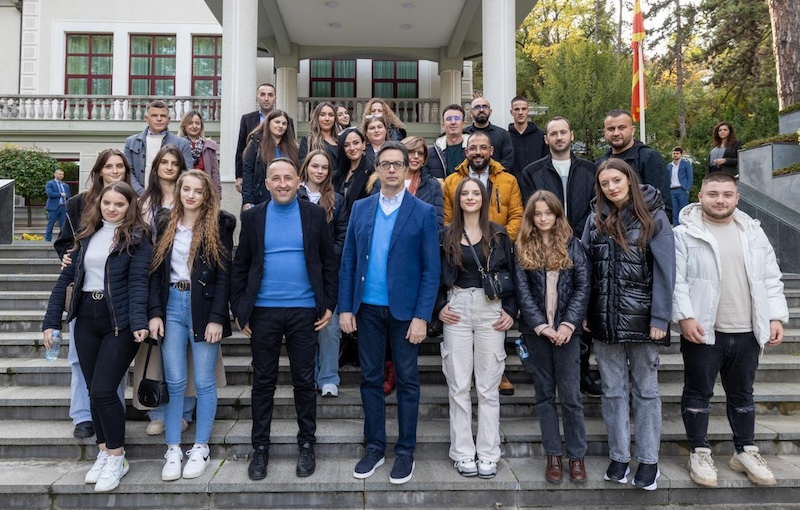 Presidenti Stevo Pendarovski dje ka pritur në kabinetin e tij përfaqësues dhe nxënës të shkollës së gjuhëve të huaja “Kliti School” nga Kosova.