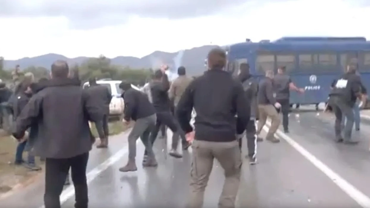 Dhe përleshjet shpërthyen kur protestuesit shtynë përpara, duke bërë që policia të përdorte gaz lotsjellës dhe “granata zhurmuese”.