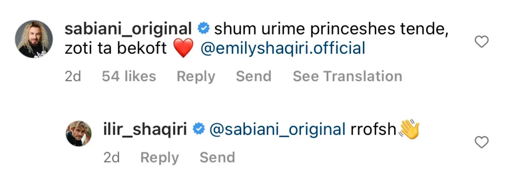 “Shumë urime princeshës tënde, Zoti ta bekoftë”, shkruan Sabiani.