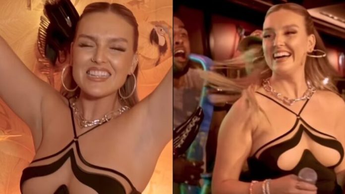 Perrie u shfaq tejet seksi me një veshje, e cila mburrej me prerje të guximshme dhe i linte shumë pak imagjinatës, shkruan DailyMail.