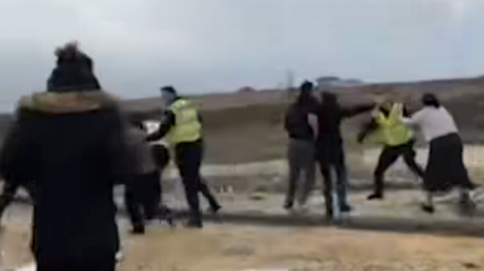 Tutje në raport bëhet e ditur se pas intervenimit të policisë, për parandalim të tejkalimit dhe kërkesës për kthim në kolonë, tre persona të dyshuar nuk kanë zbatuar udhëzimet zyrtare dhe kanë sulmuar zyrtarët policorë.