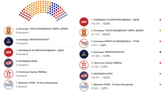 Në nivel shtetëror LSDM-ja dhe koalicioni për Ardhmëri Evropiane ka marrë 154.684 vota kurse Fronti Evropian 137.561. Me këtë, LMSD-ja ka 17 mijë vota më shumë por një mandat më pak se Fronti Evropian në Kuvend. Dallimi mes Të Majtës dhe “ZNAM” në nivel shteti është 12 mijë vota në favor të “Të Majtës” por partitë janë njësoj me numër të mandateve të fituara në Kuvend.