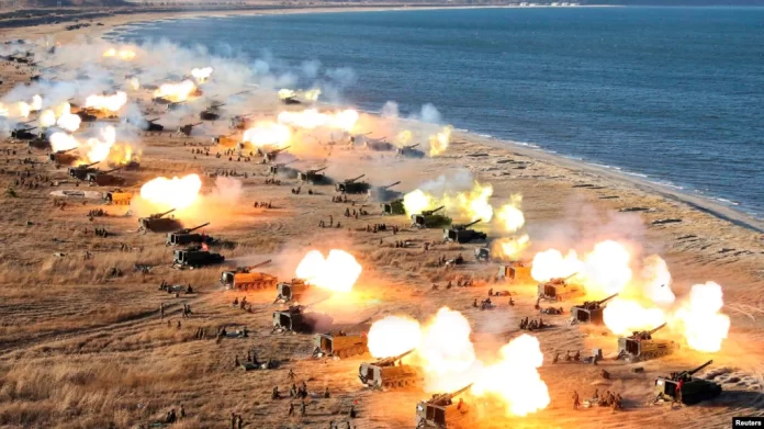Ushtria Popullore Koreane ka nisur të shtëna “kërcënuese, paralajmëruese drejt ujërave lindorë dhe perëndimorë… si kundërmasë e fuqishme ushtarake”, ka thënë Shtabi i Përgjithshëm i ushtrisë, sipas një deklarate të publikuar nga agjencia shtetërore e lajmeve, KCNA.