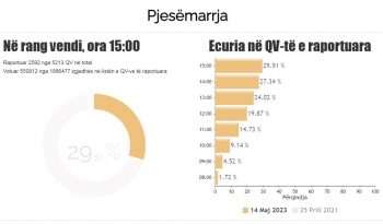Deri në orën 15:00 pjesëmarrja sipas KQZ-së ka qenë 29.51% në rang vendi.