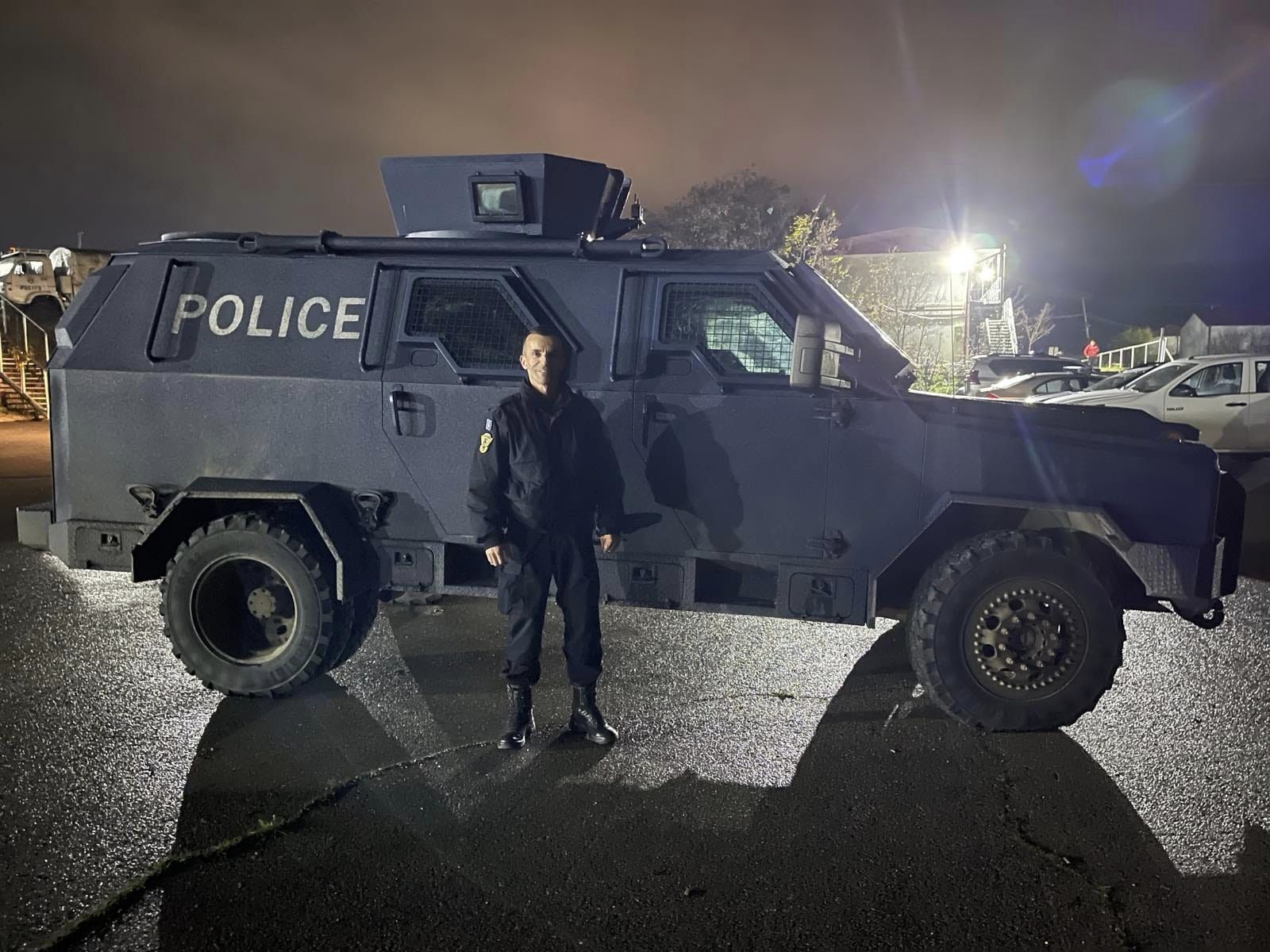 Pjesëtari i Njësisë Speciale të Kosovës, Rrahman Toplica, ka postuar një fotografi pranë një blinde që përdoret nga kjo njësi.