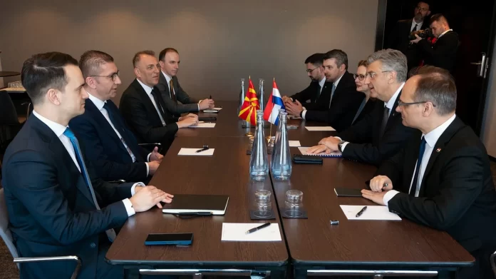 Të mërkurën në Bruksel, ai u takua gjithashtu me kryeministrin Hristijan Mickoski, gjatë të cilit i njoftoi “X” se Kroacia do të vazhdojë të mbështesë Maqedoninë në rrugën e saj drejt anëtarësimit në BE.