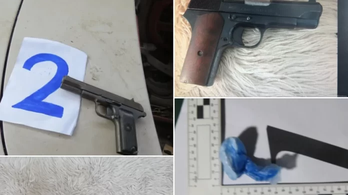 “Pesë pako me substancë pluhur të bardhë, 52 fishekë nga një pushkë automatike kalibri 7.62, dy fishekë nga një pistoletë kalibri të panjohur dhe një fishek nga një pushkë automatike u gjetën në I.J. Tek S.Z. (36) u gjetën dhe sekuestruan 20 fishekë nga një pushkë automatike kalibri 7.62, një pistoletë dhe një karikator me dy fishekë që i posedonte pa leje, si dhe një peshore dixhitale me mbetje të një lënde pluhur të bardhë”.